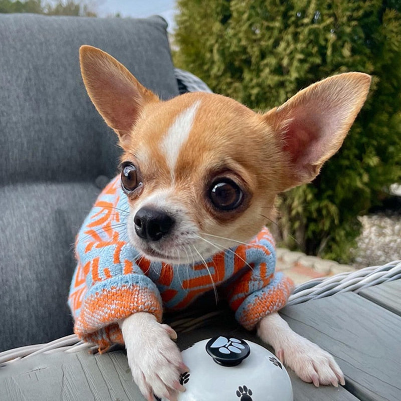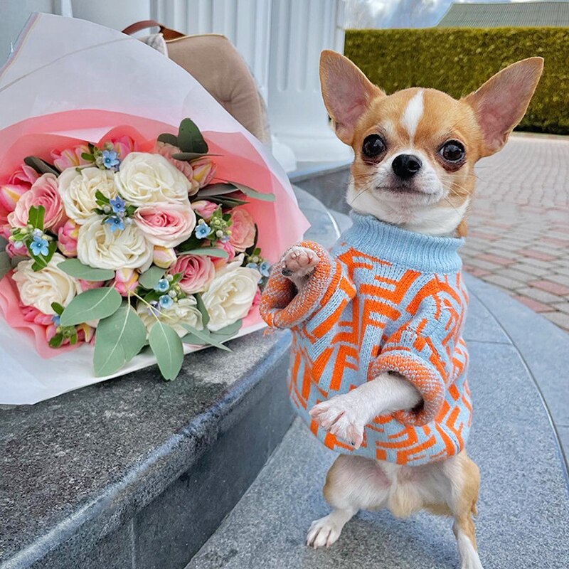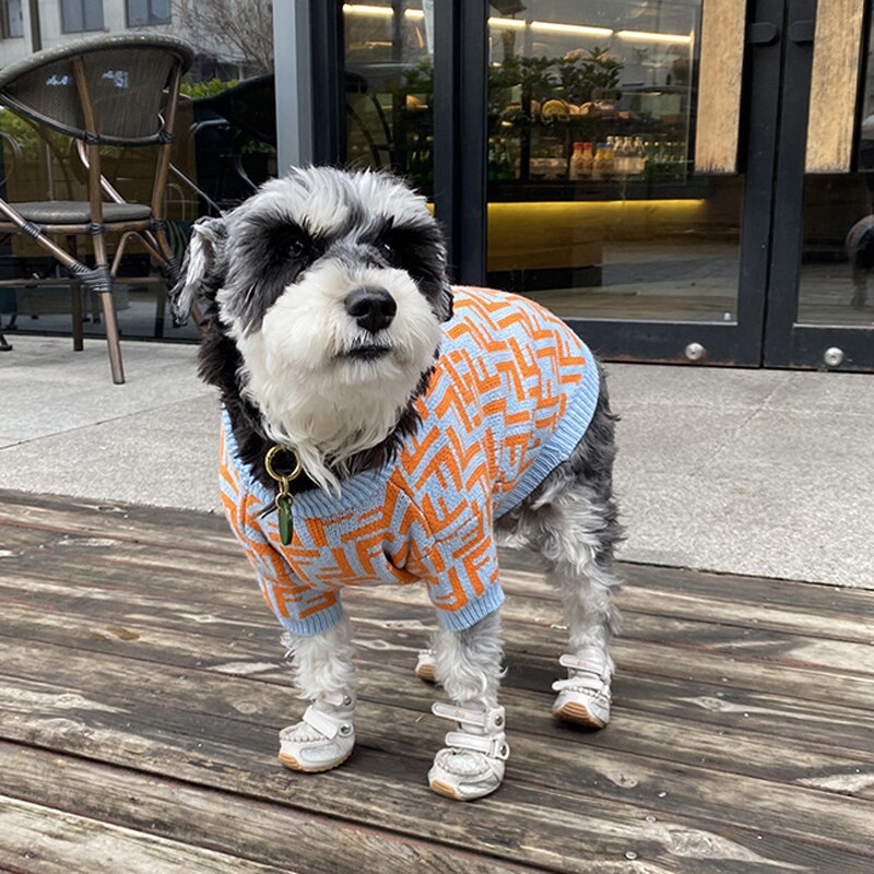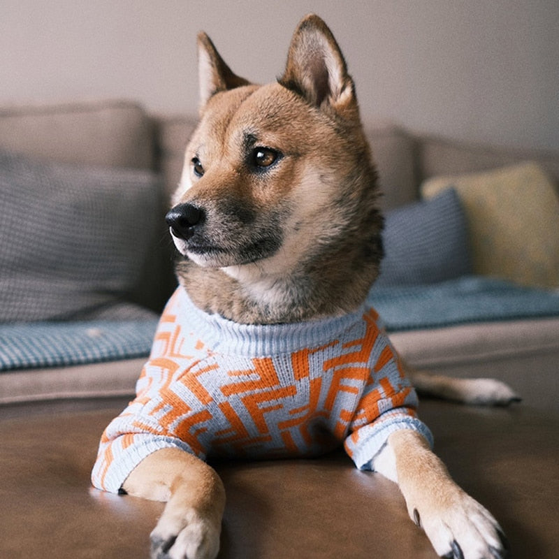 Introducing the Furry Friend Sweater - the perfect addition to your furry friend's wardrobe. This stylish pullover sweater is made with high-quality materials to keep your dog warm and cozy during the colder months. The orange and blue color combination is eye-catching and unique, making your dog the talk of the town. The sweater is easy to put on and take off with its simple pullover design. Whether your dog is playing in the park or snuggling up on the couch, the Furry Friend Sweater is the perfect choice for any occasion. Keep your furry friend fashionable and warm with this designer dog sweater.
